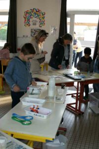 De nombreuses familles avaient fait le déplacement pour découvrir les expériences préparées par les élèves dans les classes den lien avec le projet de forum des sciences du réseau Chrysalide : «Faites des sciences.». Ces Portes Ouvertes ont aussi été l’occasion de rencontrer les associations de Parents d’élèves, l’OGEC et l’APEL qui œuvrent pour la réussite de ces projets et le service périscolaire qui gère la cantine et la garderie. les visiteurs ont vécu un escape game préparé par les délégués de chaque classe